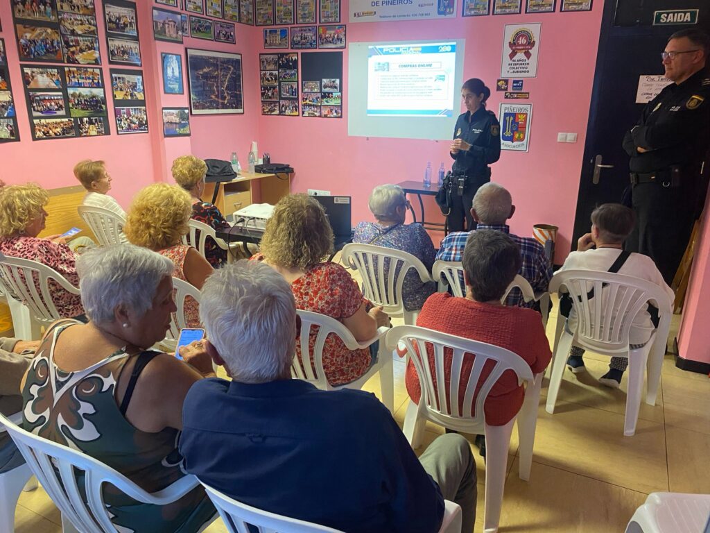 Con una buena asistencia de público, en el día 15 de octubre se celebró en Piñeiros la charla informativa sobre ciberestafas y riesgos de Internet, organizada conjuntamente por la Policía Nacional y la entidad vecinal de Piñeiros.