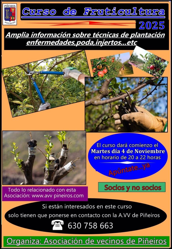 Presentamos una nueva edición del curso de fruticultura que tendrá lugar el martes día 4 de noviembre en horario de 20 a 22 horas.